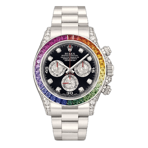 Rolex Cosmograph Daytona “Rainbow” 18 ct white gold bright black, diamond-set dial Oyster band Reference 116599RBOW
