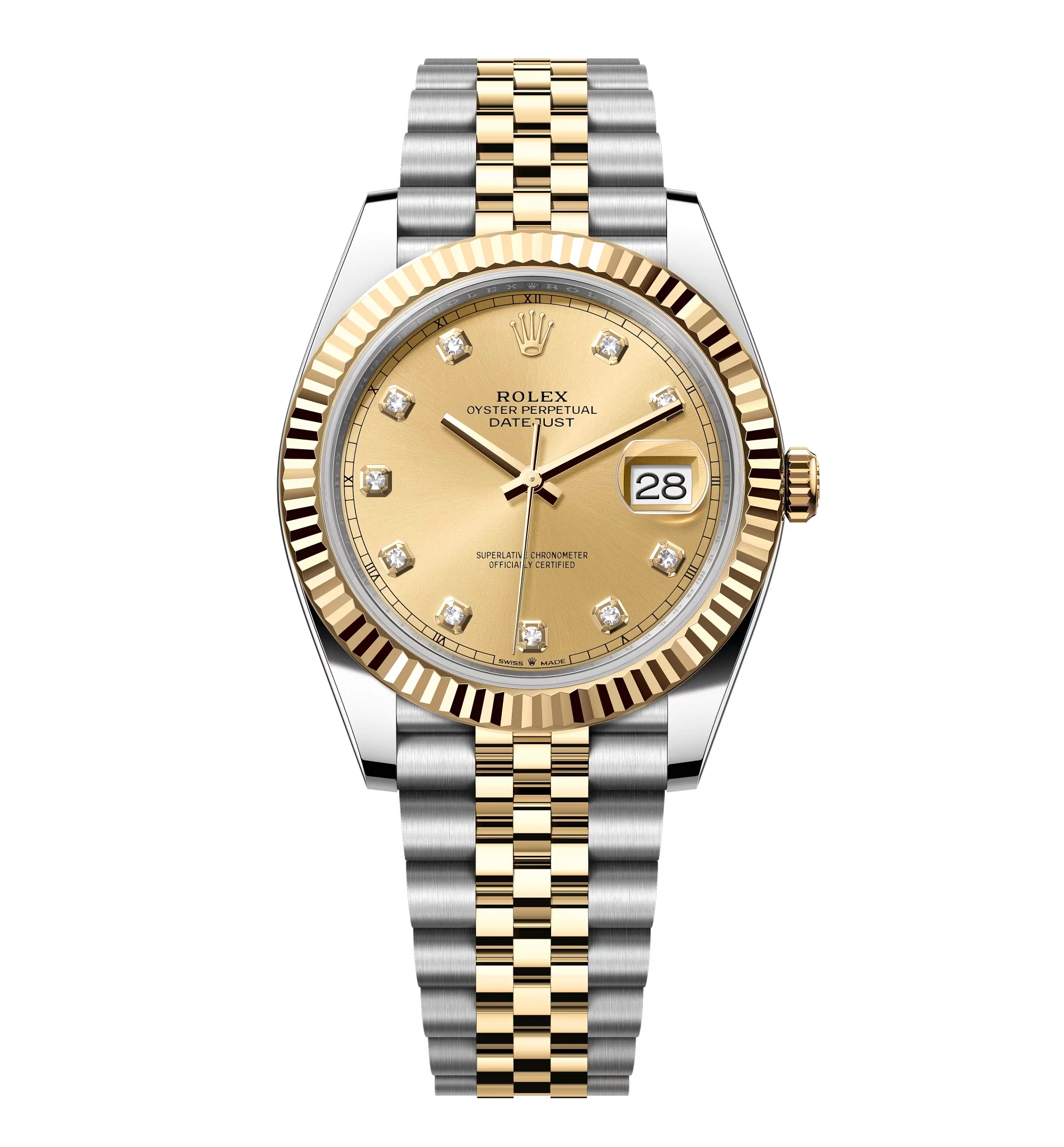 Rolex Datejust 41 Oyster Perpetual Oystersteel and yellow gold champagne colour diamond-set dial Jubilee band Reference 126333