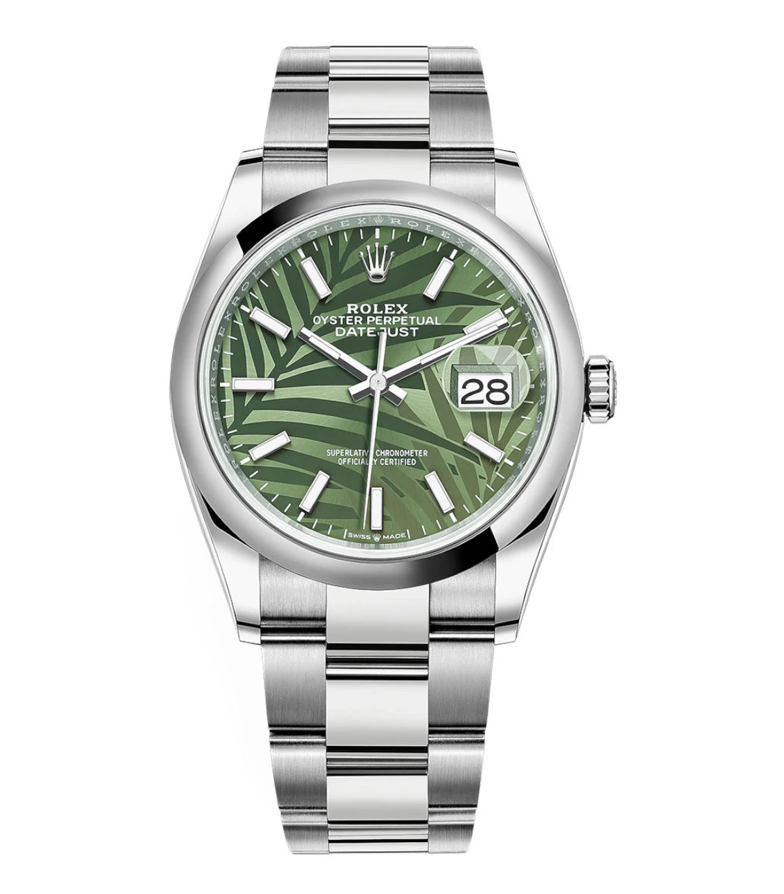 Rolex 36 Oyster Perpetual Oystersteel and Olive Green Palm Motif dial Oyster band Reference 126200
