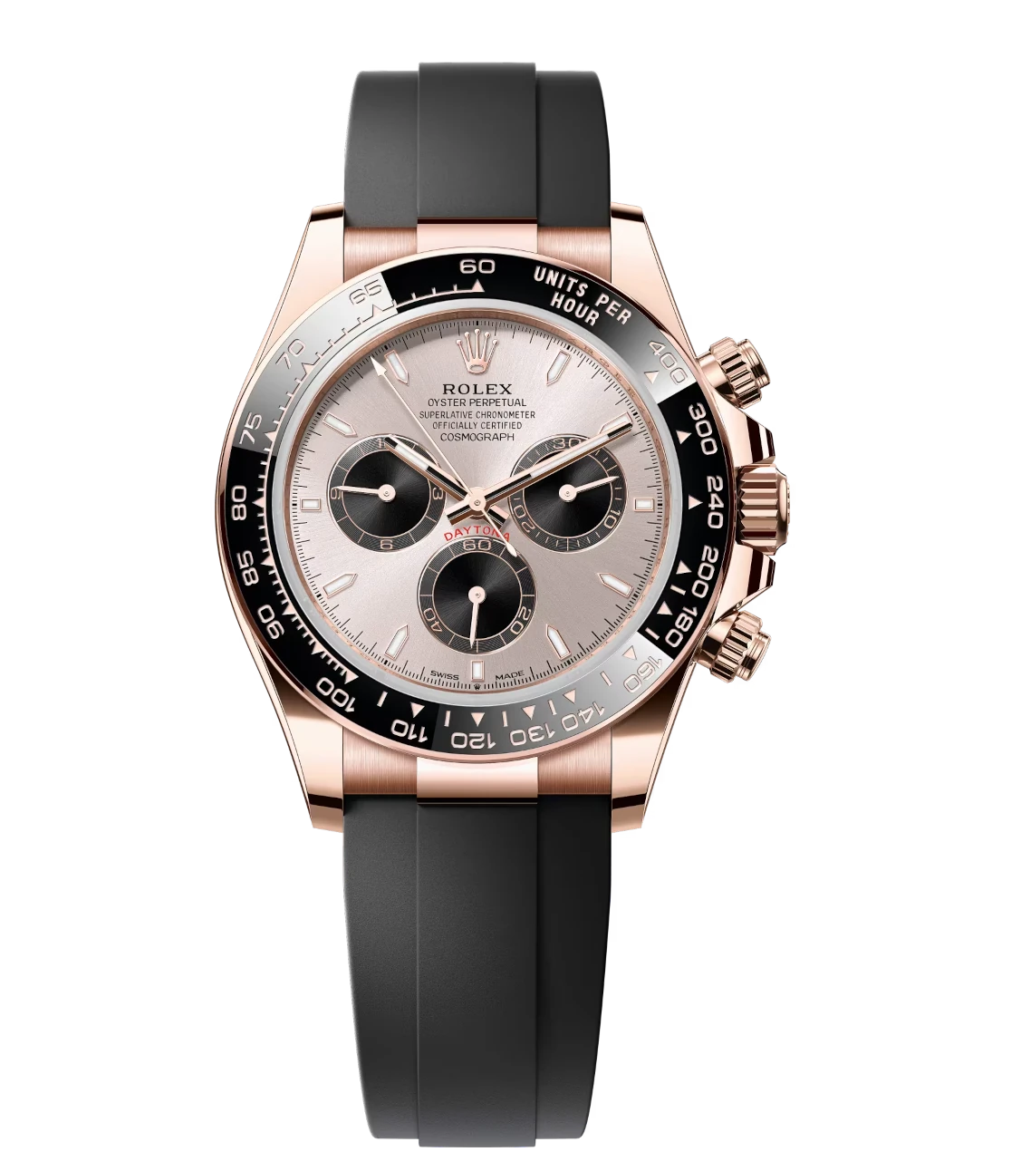 Rolex Cosmograph Daytona 40 Oyster Perpetual 18 ct Everose gold Sundust and bright black dial Oysterflex band Reference 126515LN