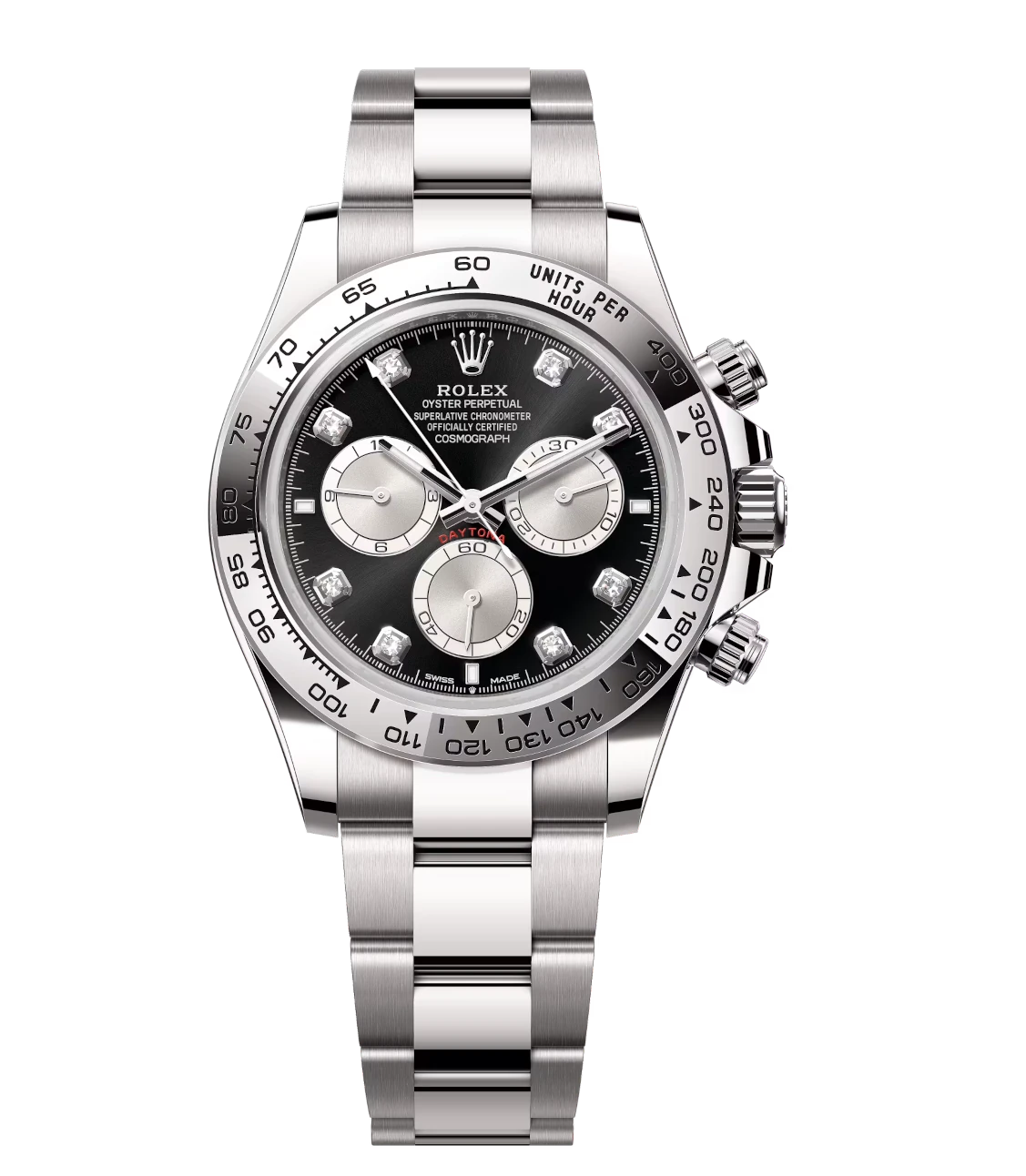 Rolex Cosmograph Daytona 40 Oyster Perpetual 18 ct white gold bright black and steel, diamond-set dial Oyster band Reference 126509