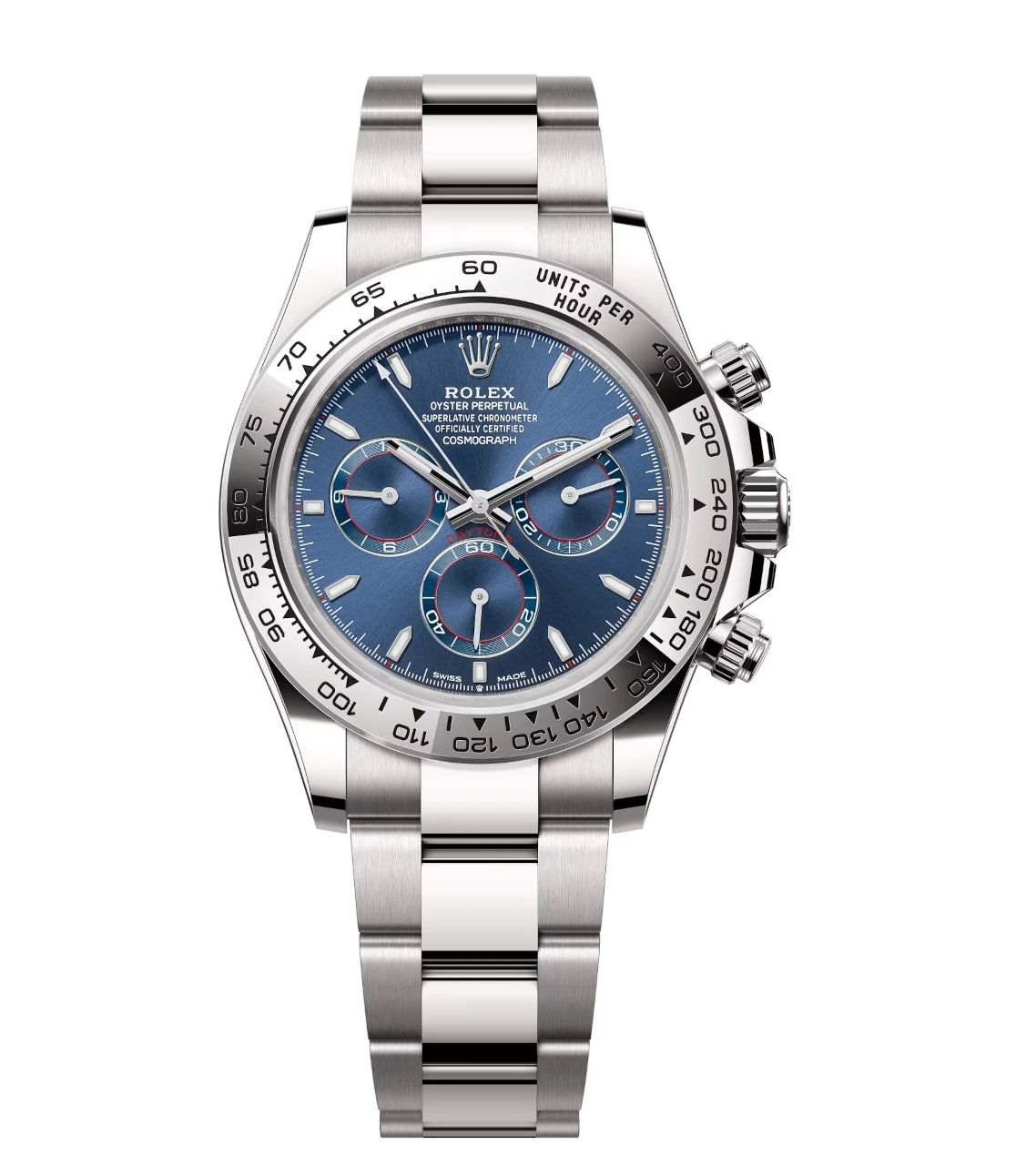 Rolex Cosmograph Daytona 40 Oyster Perpetual 18 ct white gold bright blue dial Oyster band Reference 126509