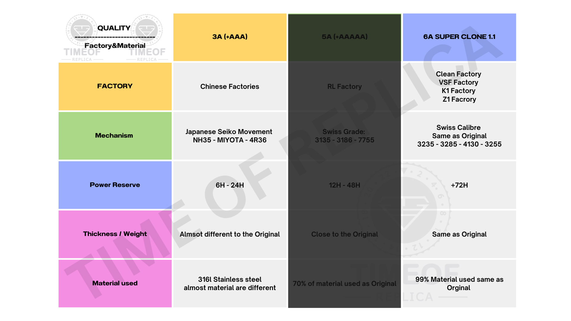 | MOVEMENT | 3A quality Japanese movement 6A super clone 1:1 CAL. 2236 by Clean Factory Click here to see the Quality Difference Schema |