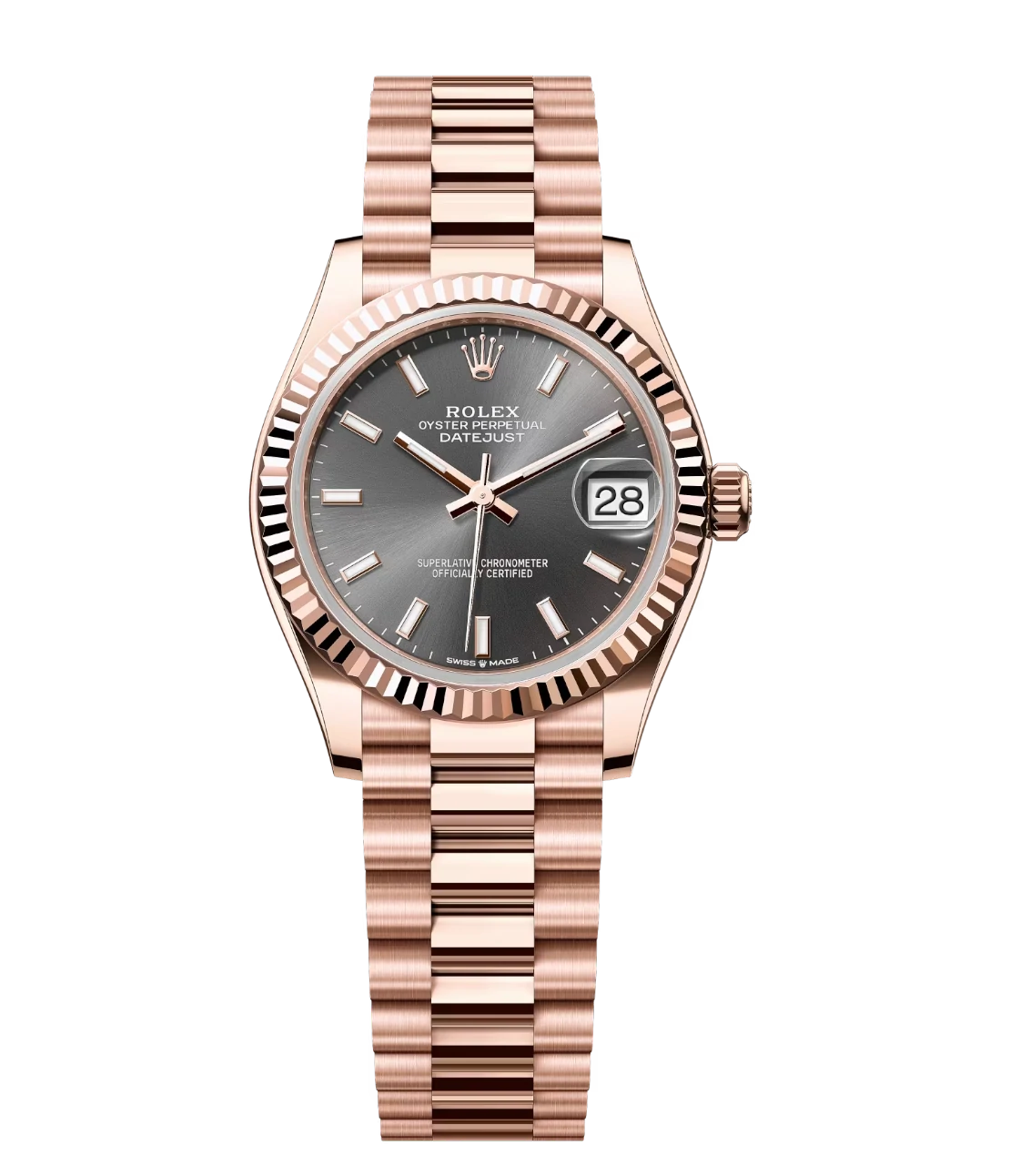 Rolex Datejust 31 Oyster Perpetual 18 ct Everose gold slate dial President band Reference 278275