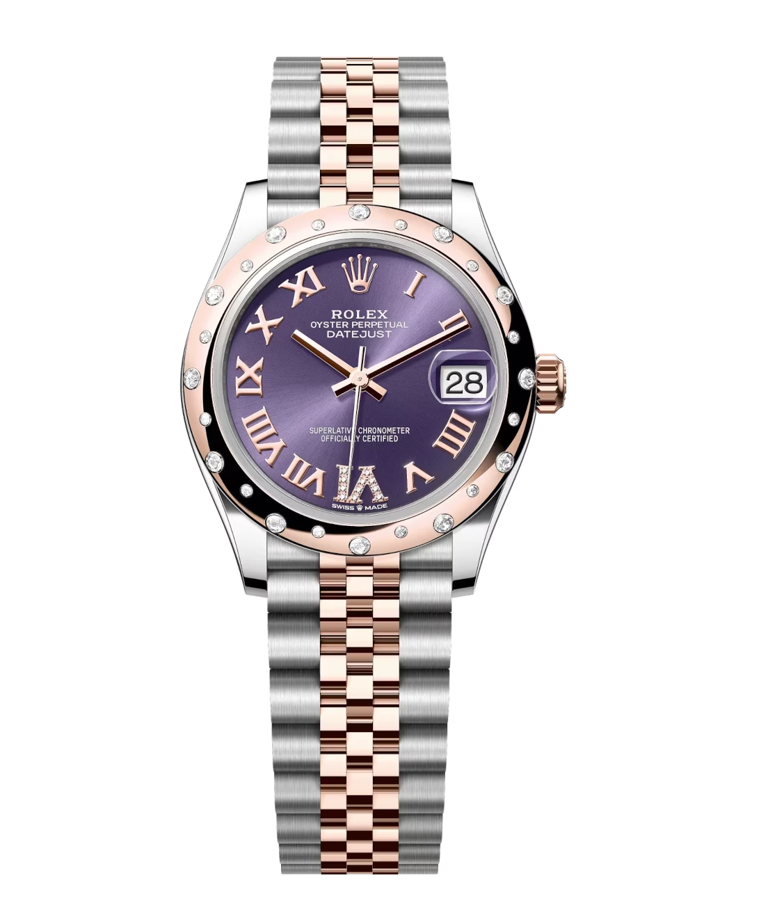 Rolex Datejust 31 Oyster Perpetual Oystersteel and Everose gold aubergine, diamond-set dial Jubilee band Reference 278341RBR