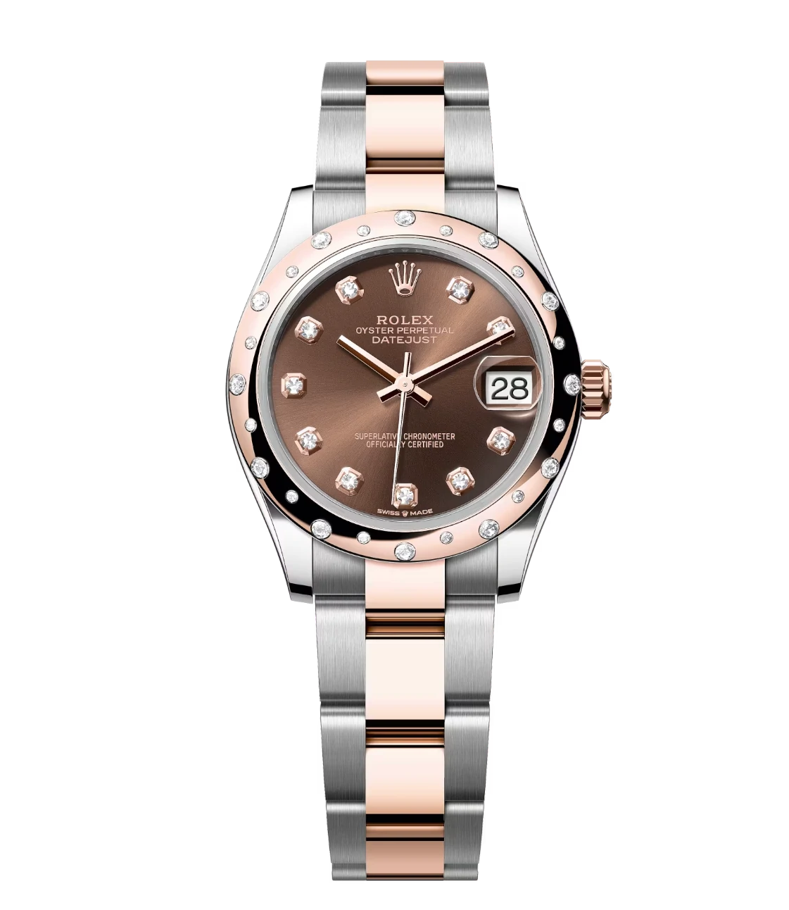 Rolex Datejust 31 Oyster Perpetual Oystersteel and Everose gold chocolate, diamond-set dial Oyster band Reference 278341RBR