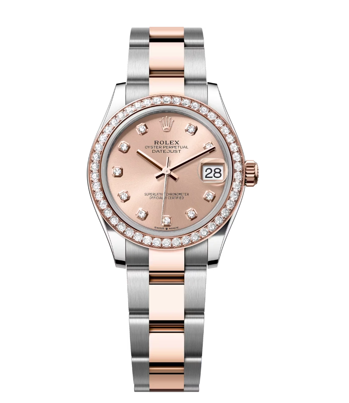 Rolex Datejust 31 Oyster Perpetual Oystersteel and Everose gold rosé colour, diamond-set dial Oyster band Reference 278381RBR
