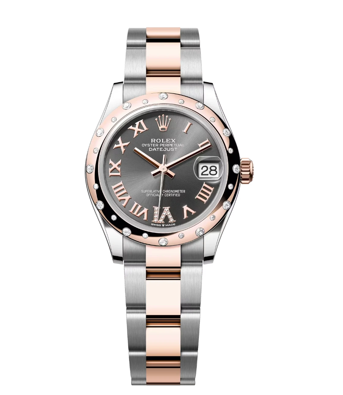 Rolex Datejust 31 Oyster Perpetual Oystersteel and Everose gold slate, diamond-set dial Oyster band Reference 278341RBR