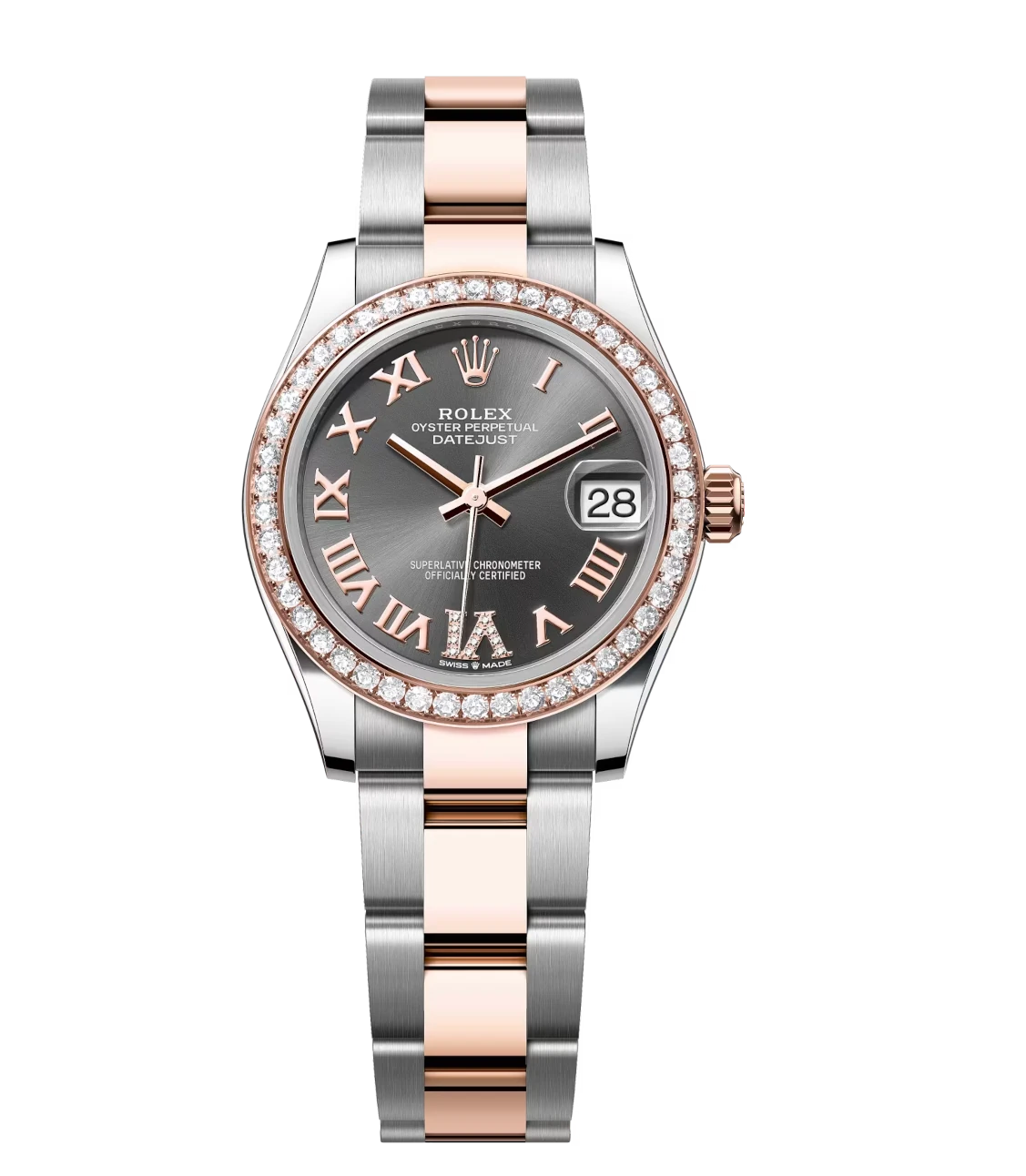 Rolex Datejust 31 Oyster Perpetual Oystersteel and Everose gold slate, diamond-set dial Oyster band Reference 278381RBR