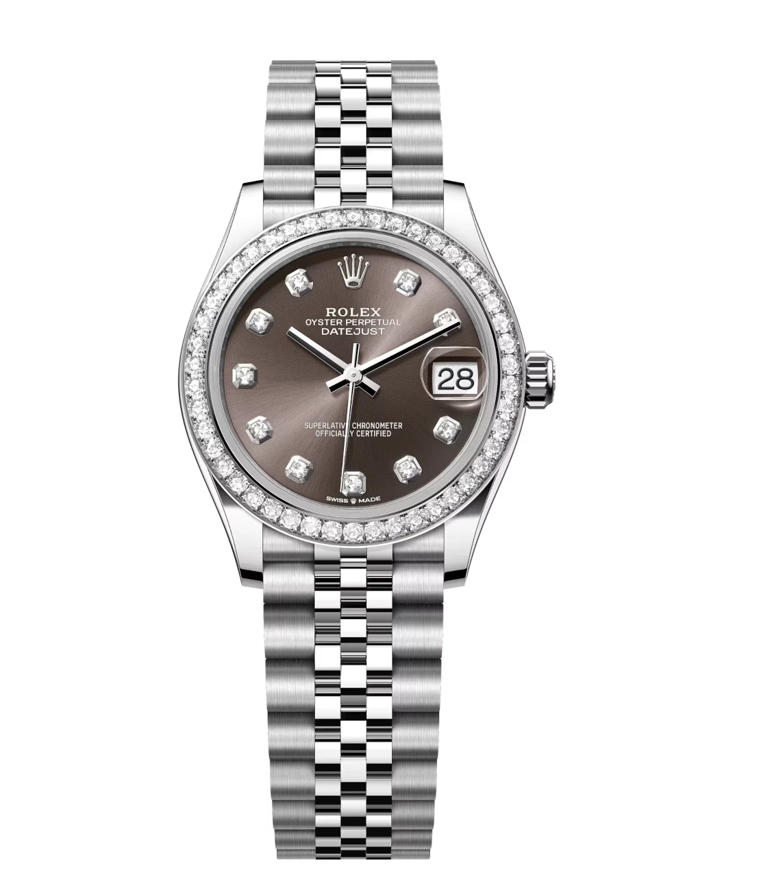 Rolex Datejust 31 Oyster Perpetual Oystersteel and white gold dark grey, diamond-set dial Jubilee band Reference 278384RBR