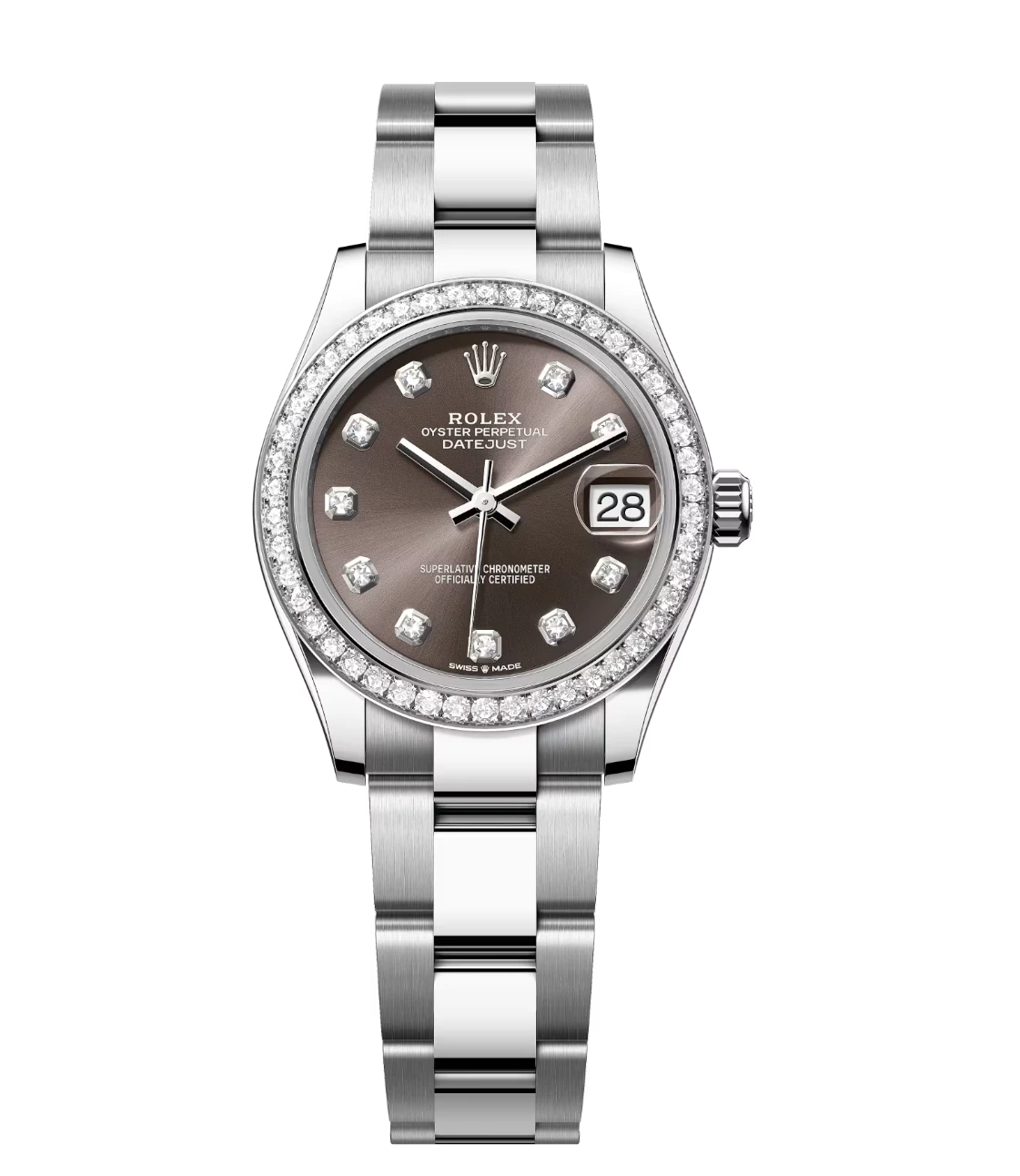 Rolex Datejust 31 Oyster Perpetual Oystersteel and white gold dark grey, diamond-set dial Oyster band Reference 278384RBR