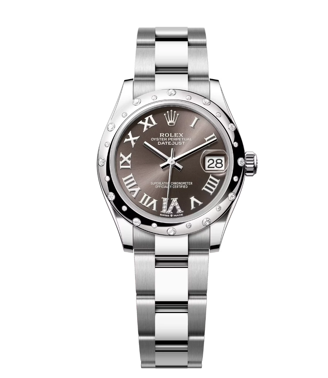 Rolex Datejust 31 Oyster Perpetual Oystersteel and white gold dark grey, diamond-set Oyster band Reference 278344RBR