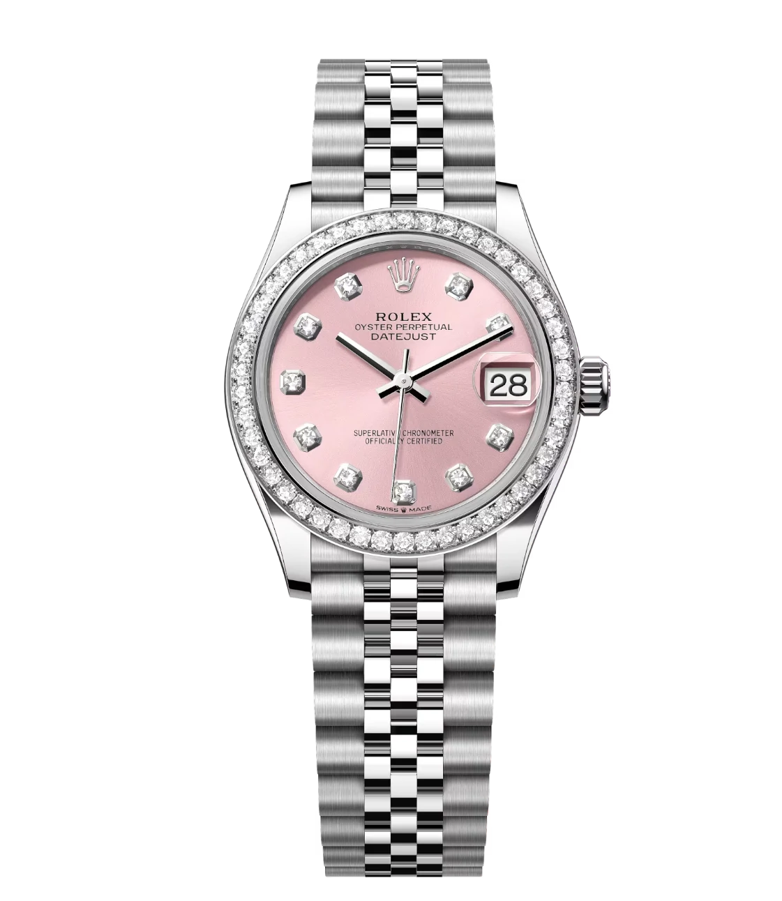 Rolex Datejust 31 Oyster Perpetual Oystersteel and white gold pink, diamond-set dial Jubilee band Reference 278384RBR
