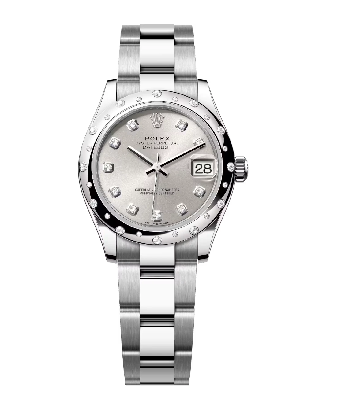 Rolex Datejust 31 Oyster Perpetual Oystersteel and white gold silver, diamond-set dial Oyster band Reference 278344RBR