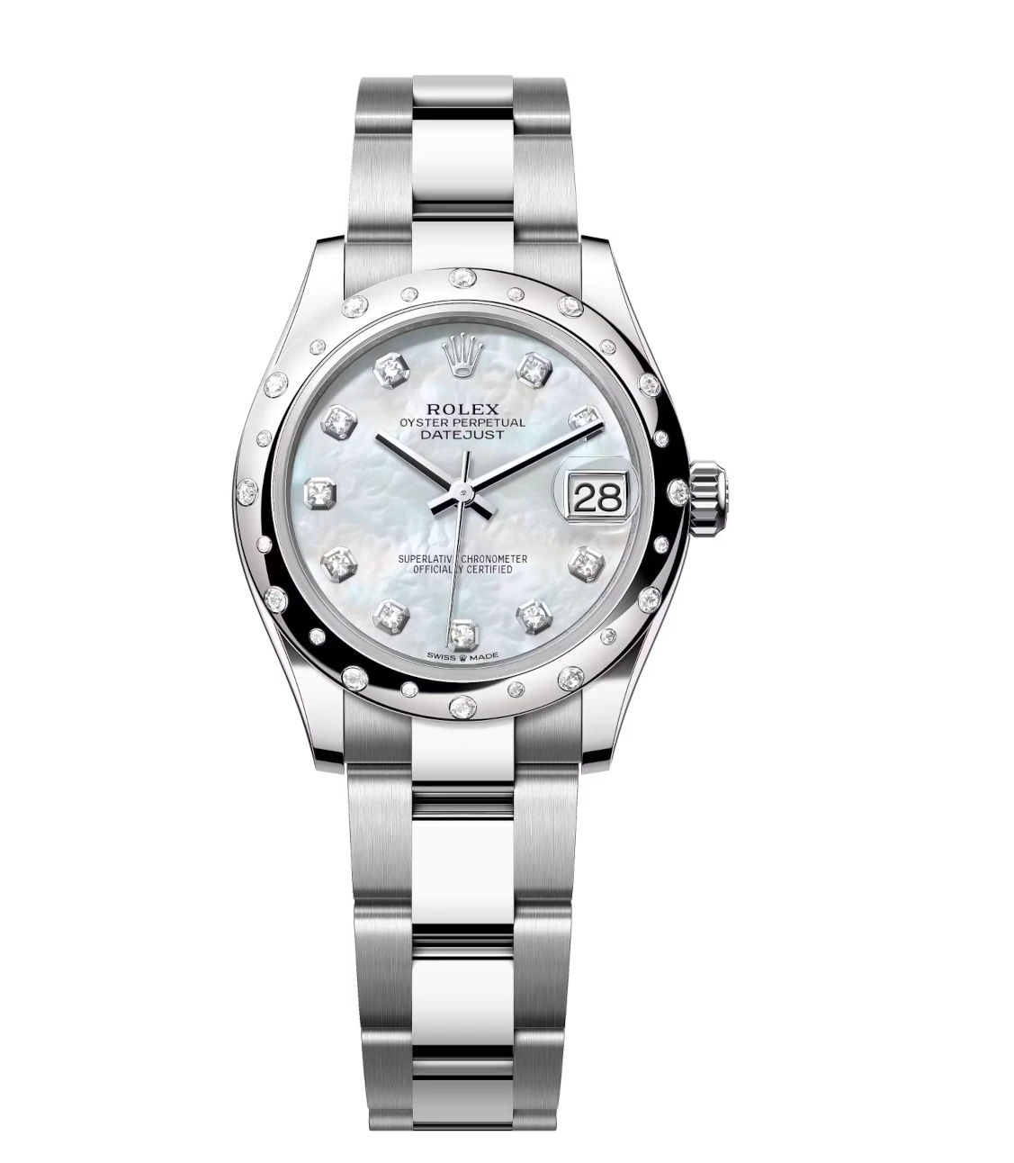 Rolex Datejust 31 Oyster Perpetual Oystersteel and white gold white mother-of-pearl, diamond-set dial Oyster band Reference 278344RBR