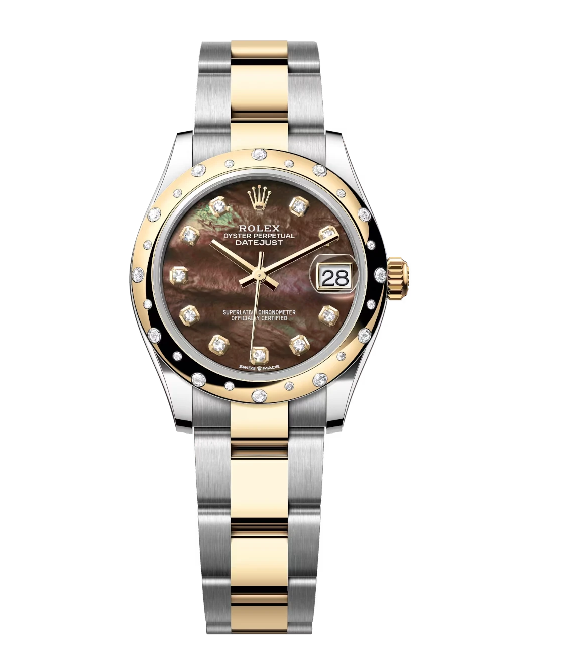 Rolex Datejust 31 Oyster Perpetual Oystersteel and yellow gold black mother-of-pearl, diamond-set dial Oyster band Reference 278343RBR