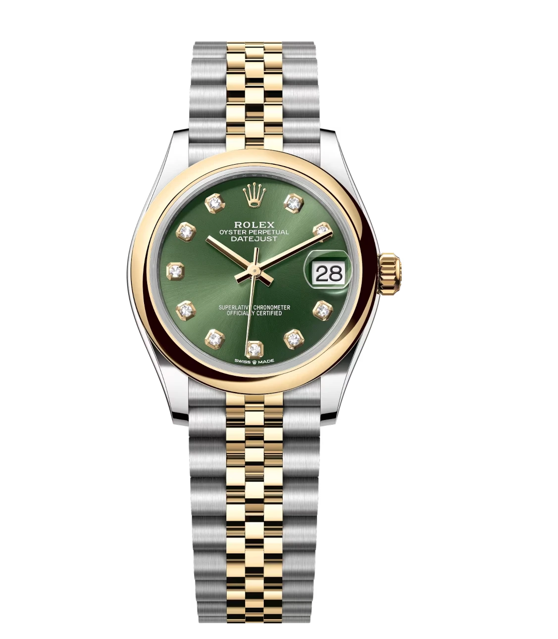 Rolex Datejust 31 Oyster Perpetual Oystersteel and yellow gold olive-green, diamond-set dial Jubilee band Reference 278243