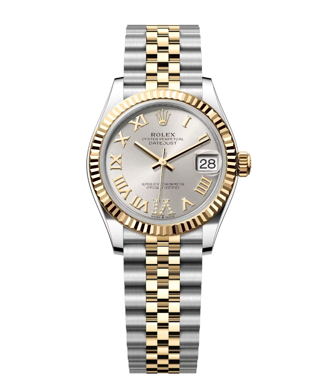 Rolex Datejust 31 Oyster Perpetual Oystersteel and yellow gold silver, diamond-set dial Jubilee band Reference 278273