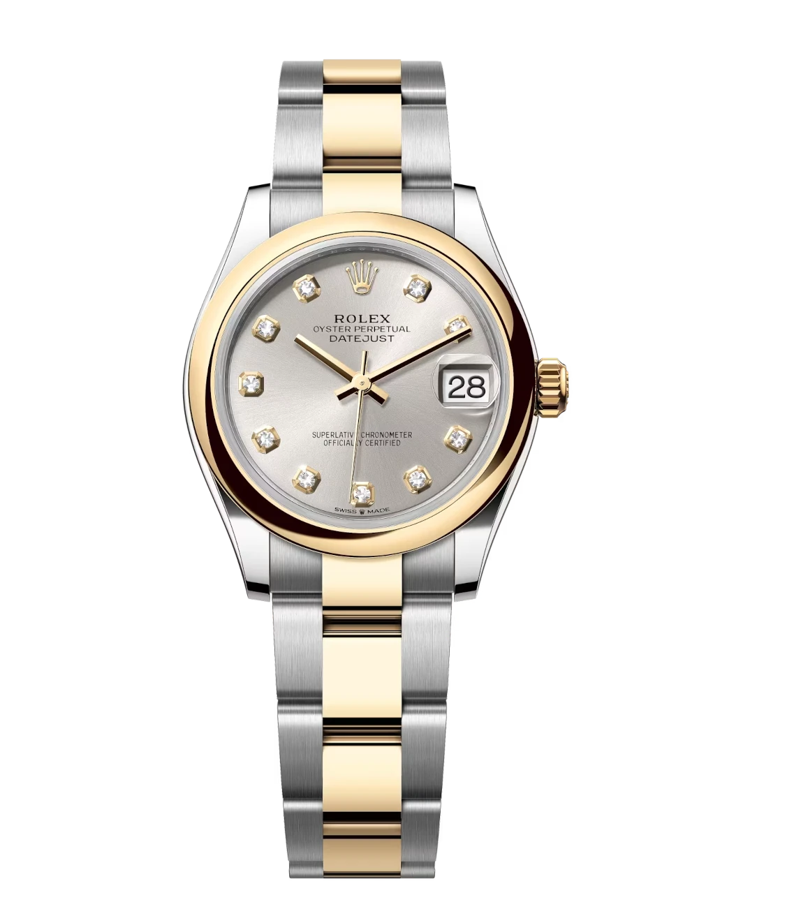 Rolex Datejust 31 Oyster Perpetual Oystersteel and yellow gold silver, diamond-set dial Oyster band Reference 278243