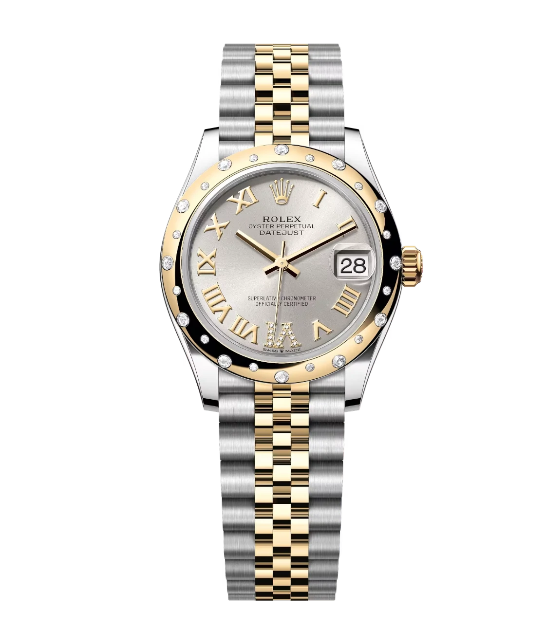 Rolex Datejust 31 Oyster Perpetual Oystersteel and yellow gold silver, diamond-set Jubilee band Reference 278343RBR