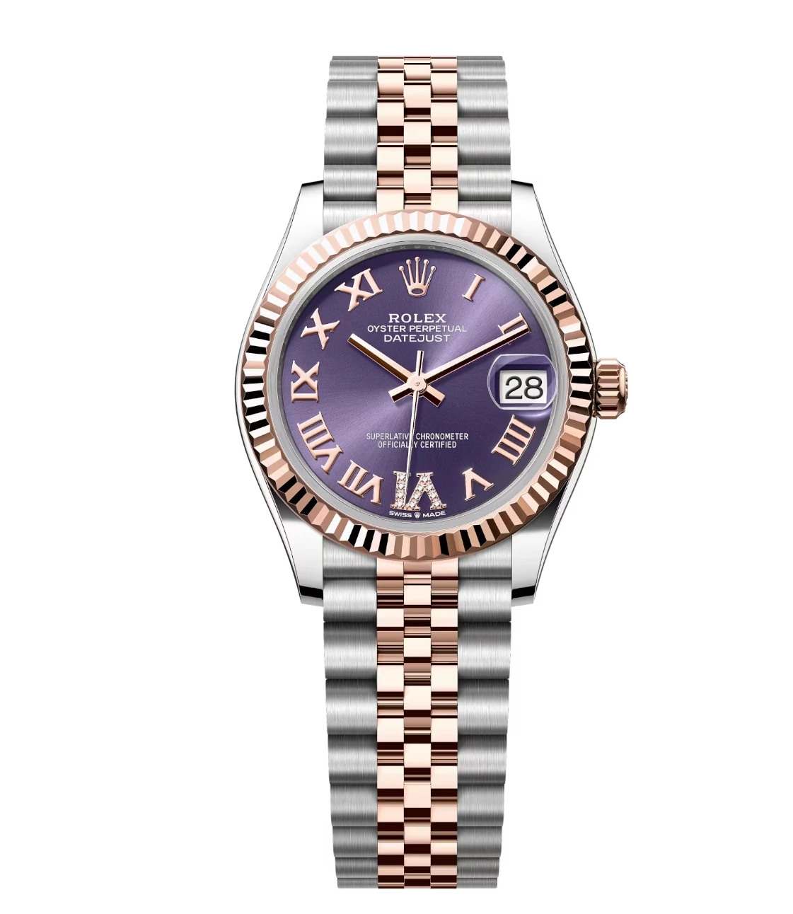 Rolex Datejust 31 Oyster Perpetual Oystersteel Everose gold aubergine, diamond-set dial Jubilee band Reference 278271