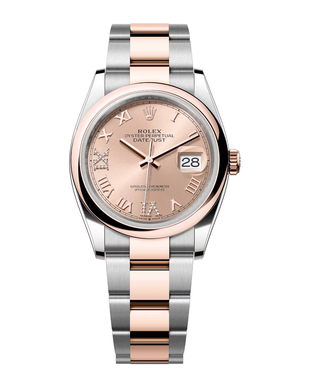 Rolex Datejust 36 Oyster Perpetual Oystersteel and Everose gold rosé colour, diamond-set dial Oyster band Reference 126201