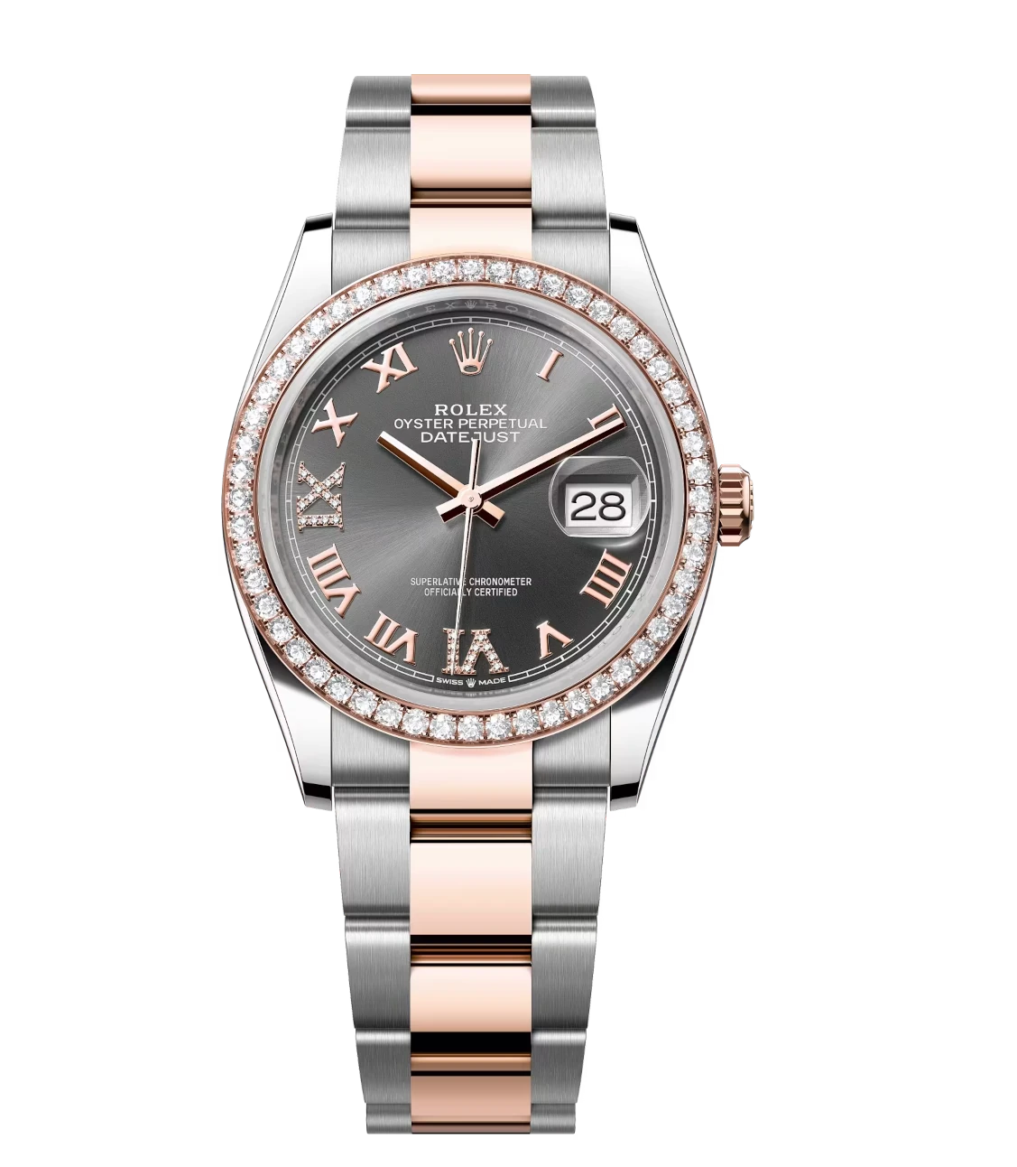 Rolex Datejust 36 Oyster Perpetual Oystersteel and Everose gold slate, diamond-set dial Oyster band Reference 126281RBR