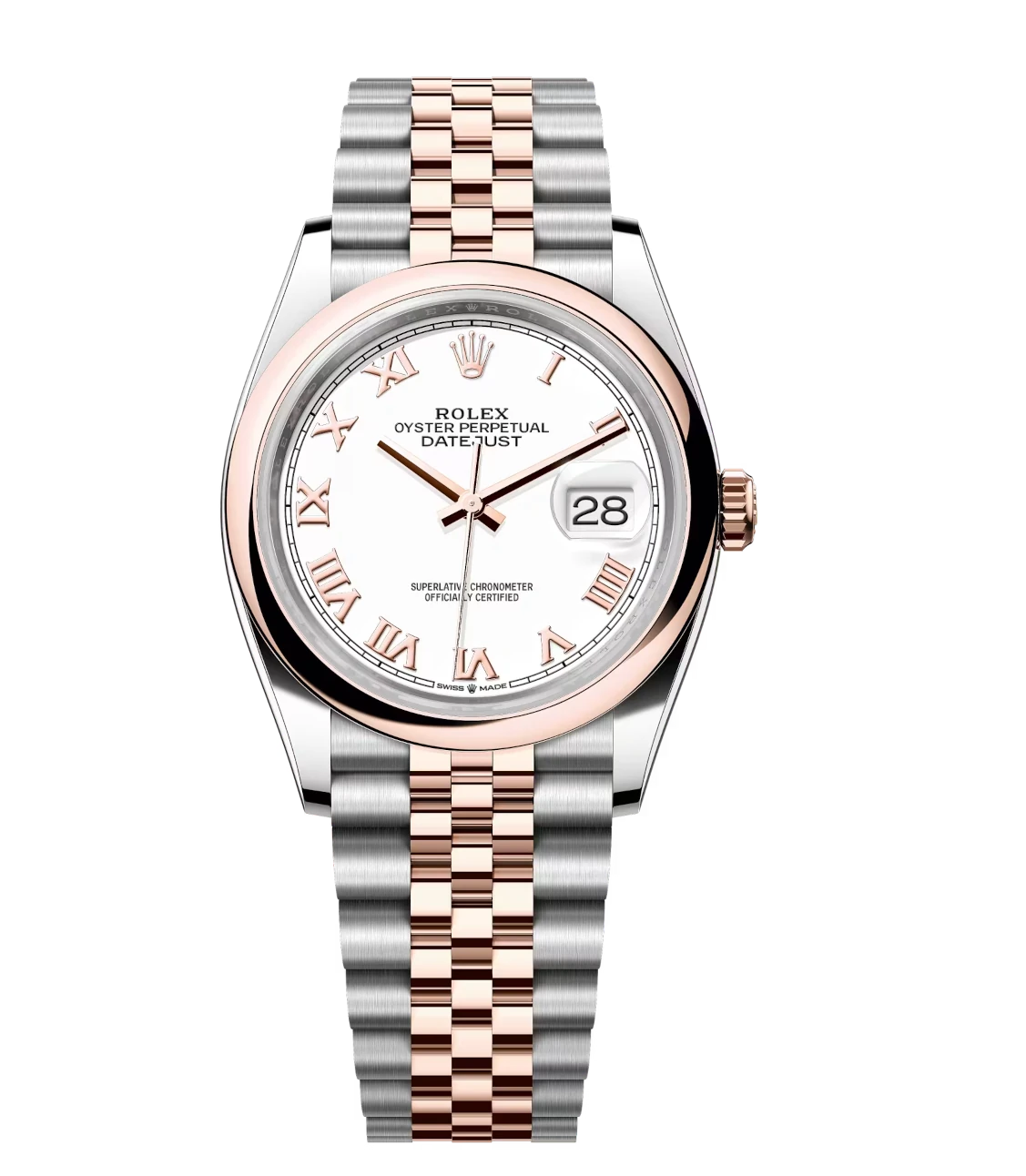 Rolex Datejust 36 Oyster Perpetual Oystersteel and Everose gold white dial Jubilee band Reference 126201