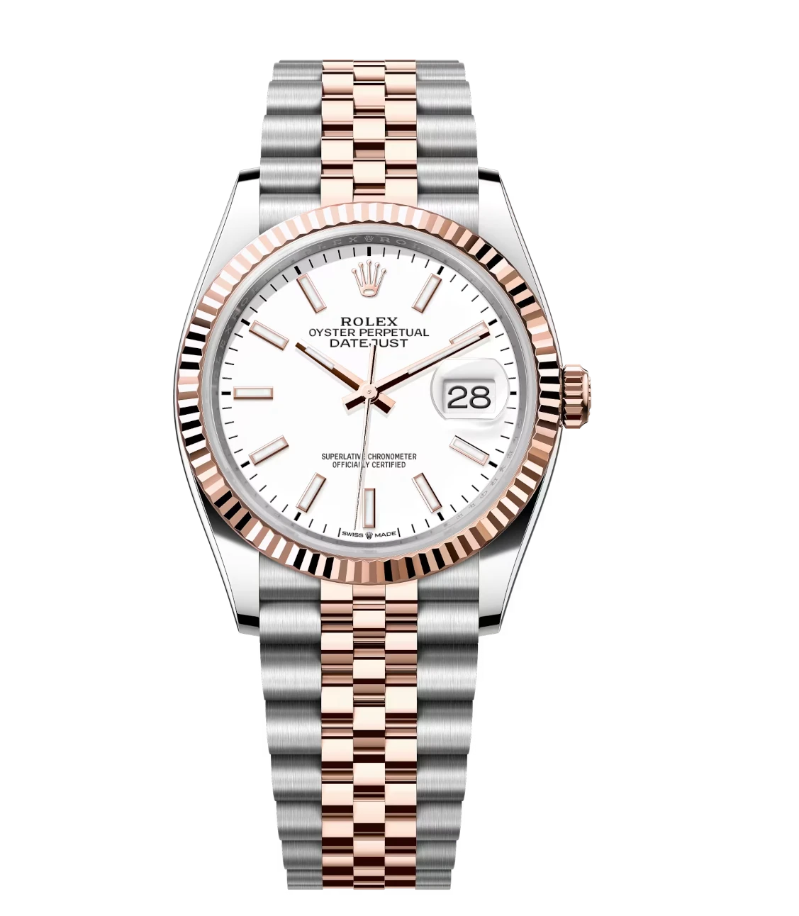 Rolex Datejust 36 Oyster Perpetual Oystersteel and Everose gold white dial Jubilee band Reference 126231