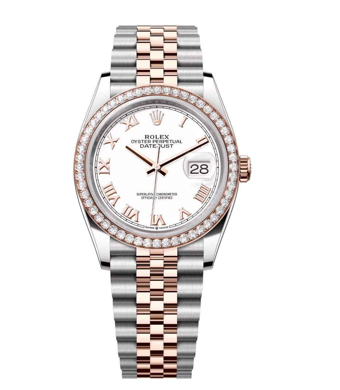 Rolex Datejust 36 Oyster Perpetual Oystersteel and Everose gold white dial Jubilee band Reference 126281RBR