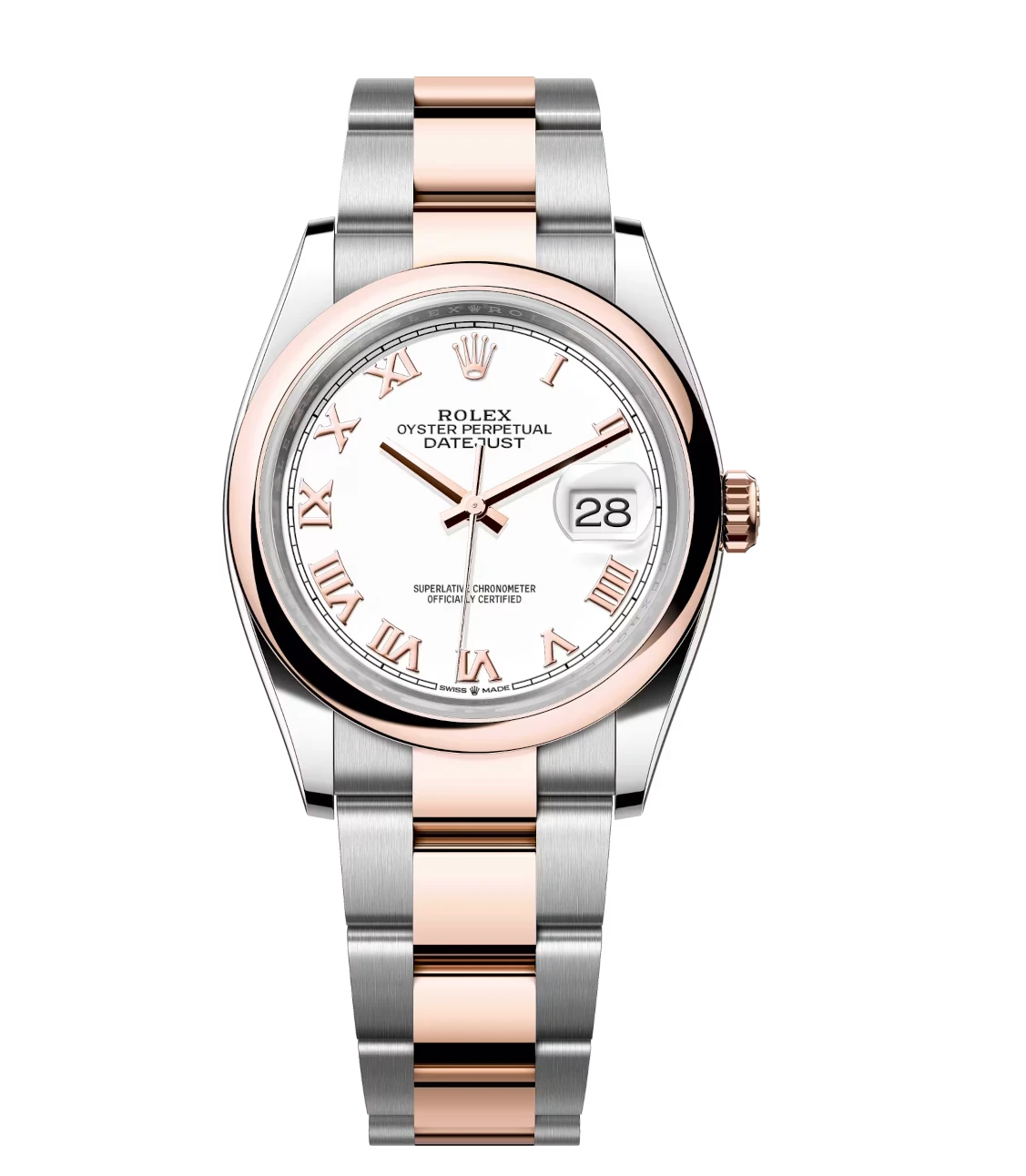 Rolex Datejust 36 Oyster Perpetual Oystersteel and Everose gold white dial Oyster band Reference 126201