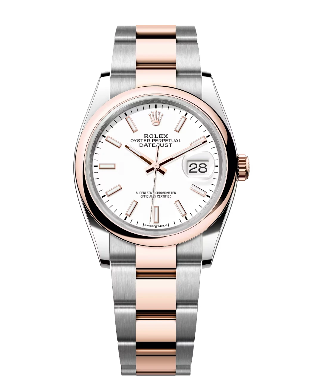 Rolex Datejust 36 Oyster Perpetual Oystersteel and Everose gold white dial Oyster band Reference 126201