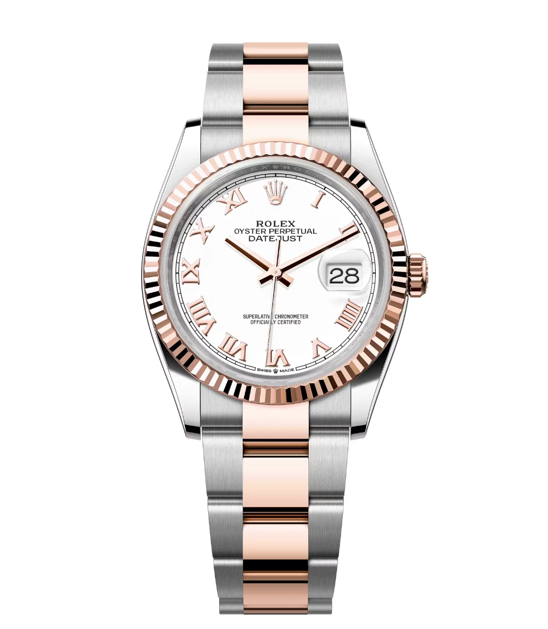 Rolex Datejust 36 Oyster Perpetual Oystersteel and Everose gold white dial Oyster band Reference 126231