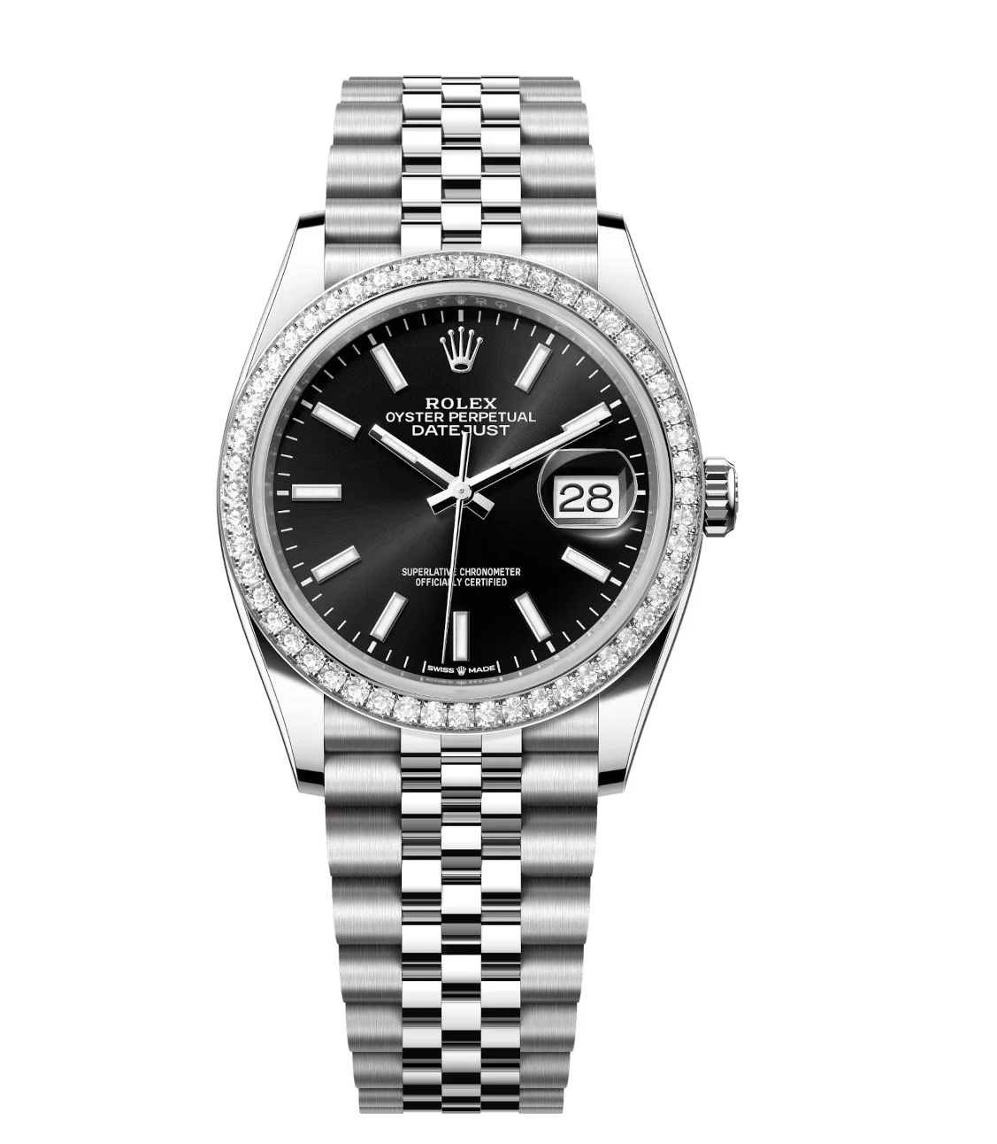 Rolex Datejust 36 Oyster Perpetual Oystersteel and white gold bright black dial Jubilee band Reference 126284RBR