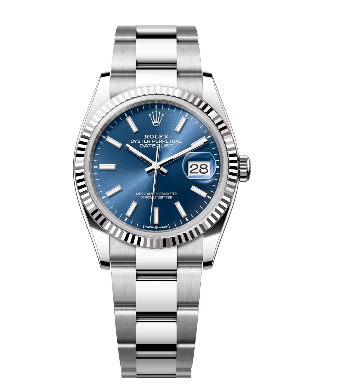 Rolex Datejust 36 Oyster Perpetual Oystersteel and white gold bright blue dial Oyster band Reference 126234