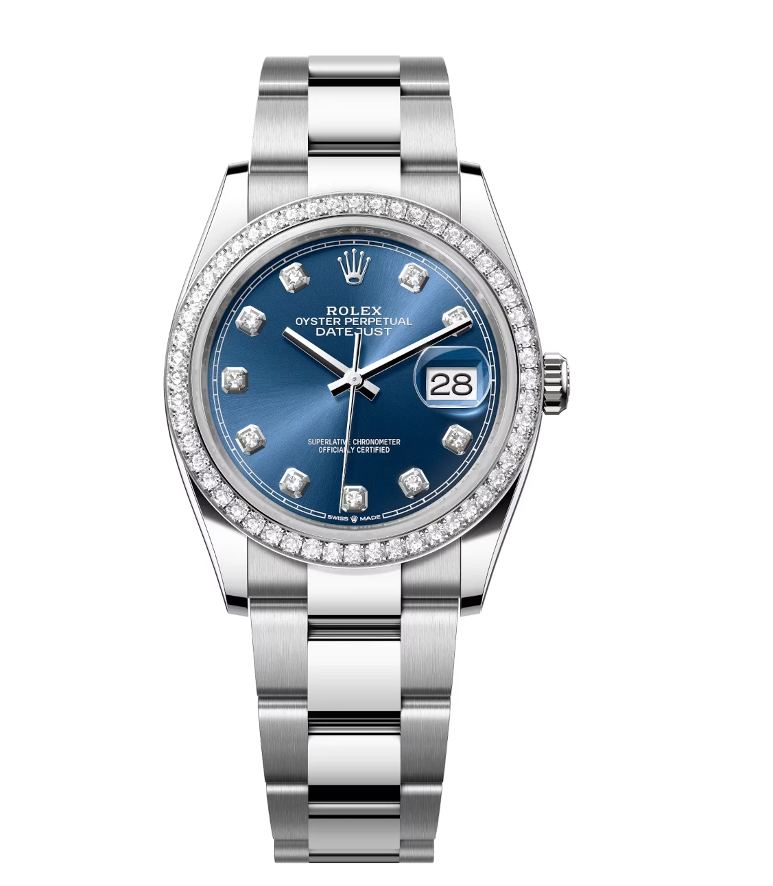 Rolex Datejust 36 Oyster Perpetual Oystersteel and white gold bright blue, diamond-set dial Oyster band Reference 126284RBR