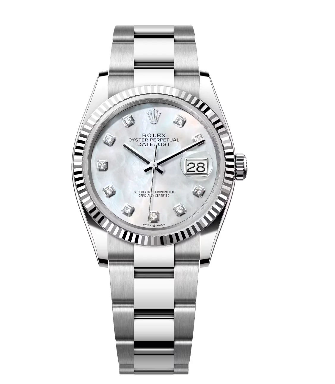 Rolex Datejust 36 Oyster Perpetual Oystersteel and white gold white mother-of-pearl, diamond-set dial Oyster band Reference 126234