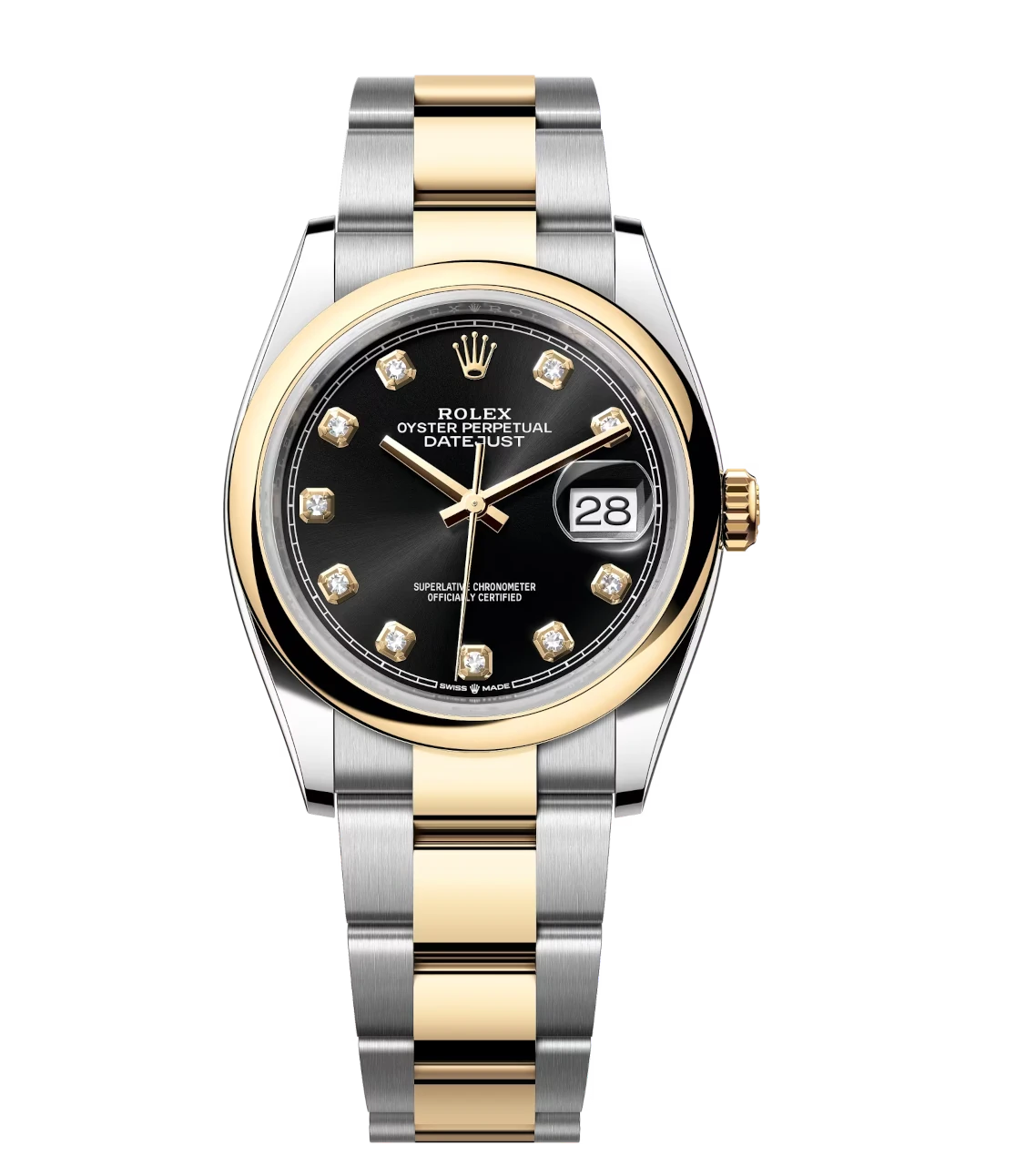 Rolex Datejust 36 Oyster Perpetual Oystersteel and yellow gold bright black, diamond-set dial Oyster band Reference 126203