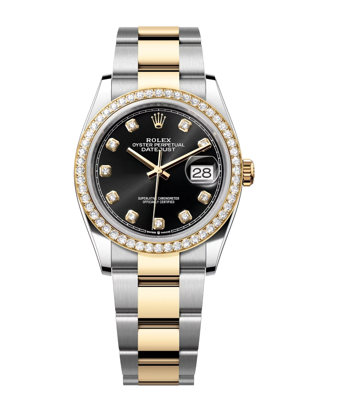 Rolex Datejust 36 Oyster Perpetual Oystersteel and yellow gold bright black, diamond-set dial Oyster band Reference 126283RBR