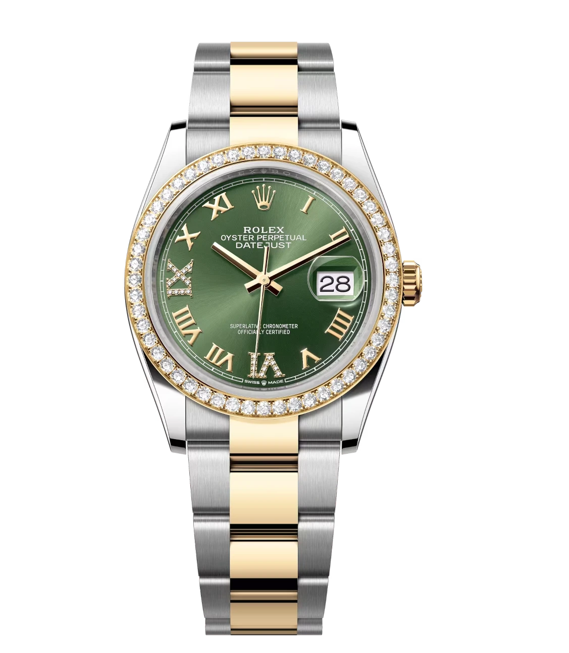 Rolex Datejust 36 Oyster Perpetual Oystersteel and yellow gold olive-green, diamond-set dial Oyster band Reference 126283RBR
