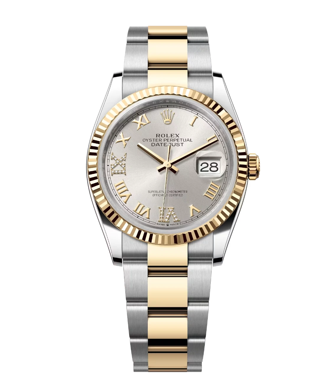 Rolex Datejust 36 Oyster Perpetual Oystersteel and yellow gold silver, diamond-set dial Oyster band Reference 126233
