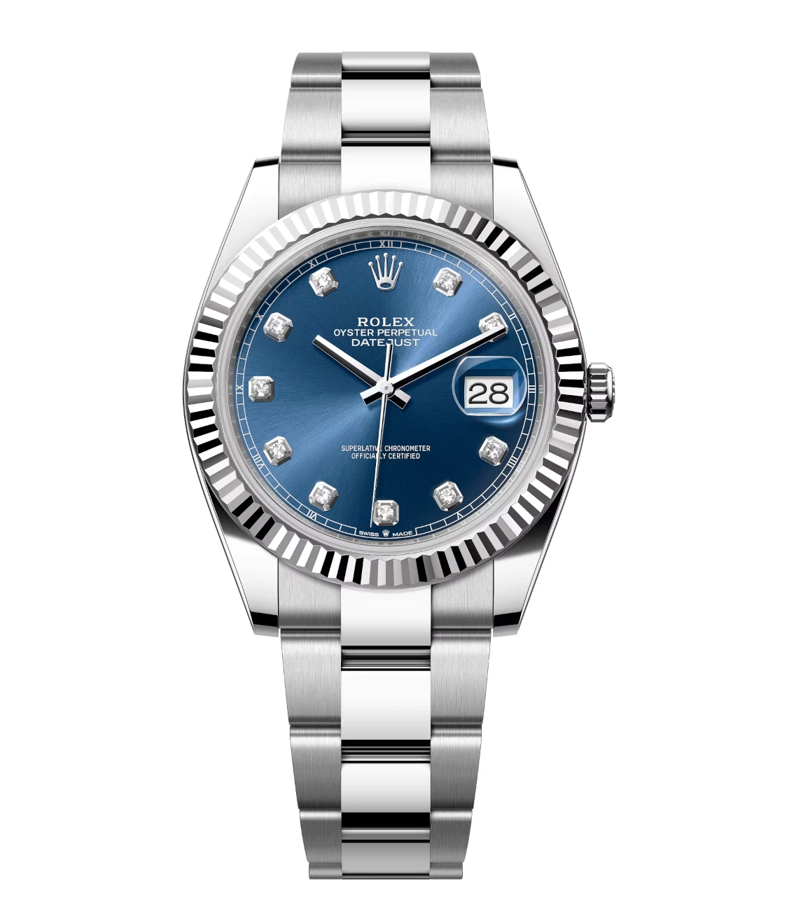 Rolex Datejust 41 Oyster Perpetual Oystersteel and white gold bright blue, diamond-set dial Oyster band Reference 126334