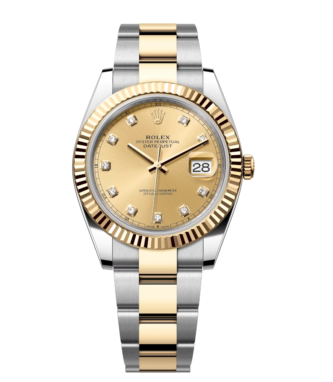 Rolex Datejust 41 Oyster Perpetual Oystersteel and yellow gold champagne colour, diamond-set dial Oyster band Reference 126333