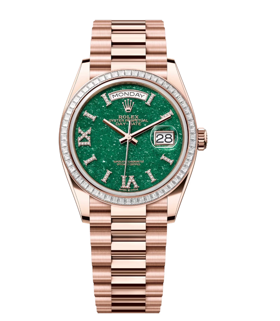Rolex Day-Date 36 Oyster Perpetual 18 ct Everose gold green aventurine, diamond-set dial diamond-set bezel President band Reference 128395TBR