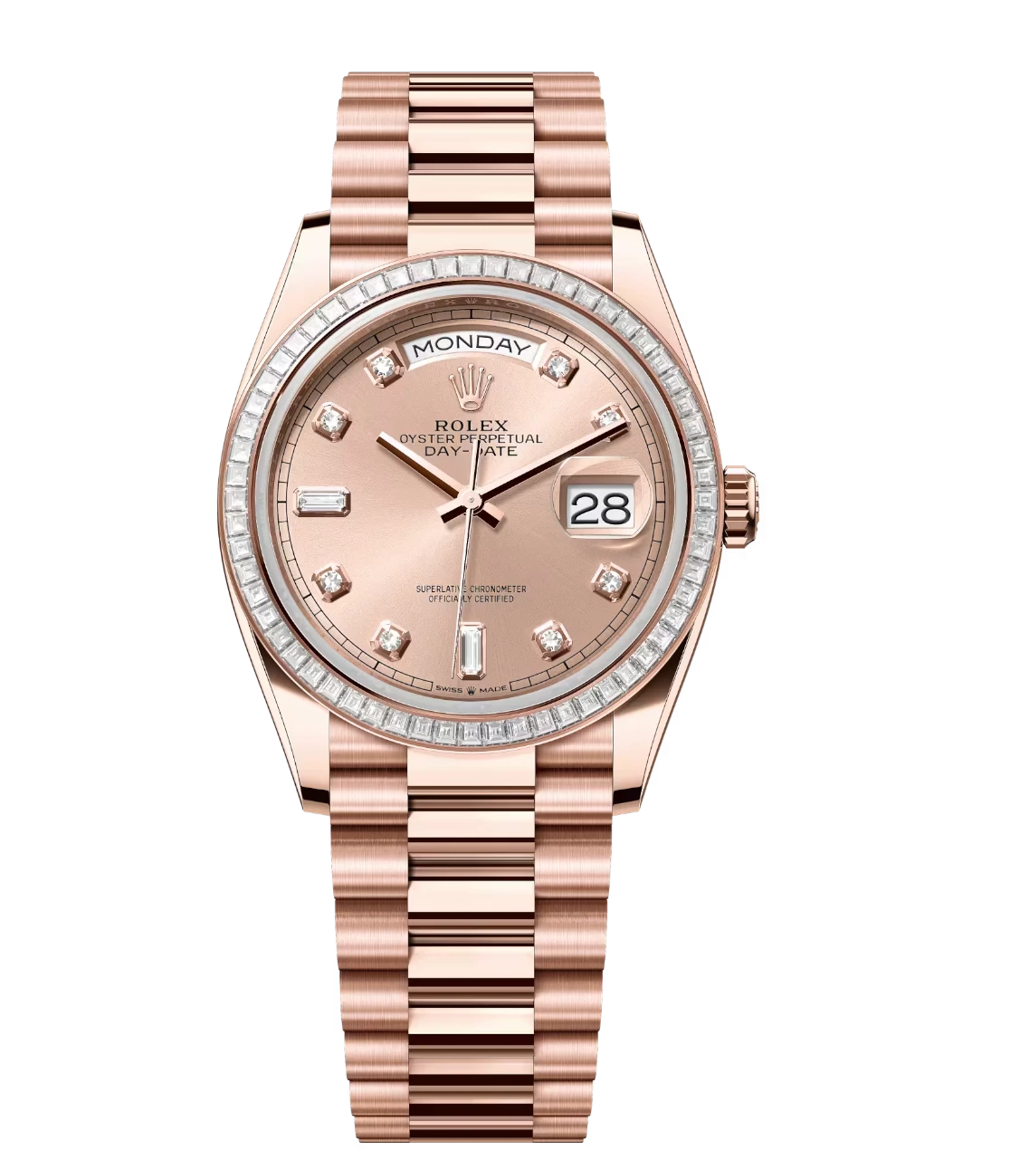 Rolex Day-Date 36 Oyster Perpetual 18 ct Everose gold rosé colour, diamond-set dial diamond-set bezel President band Reference 128395TBR
