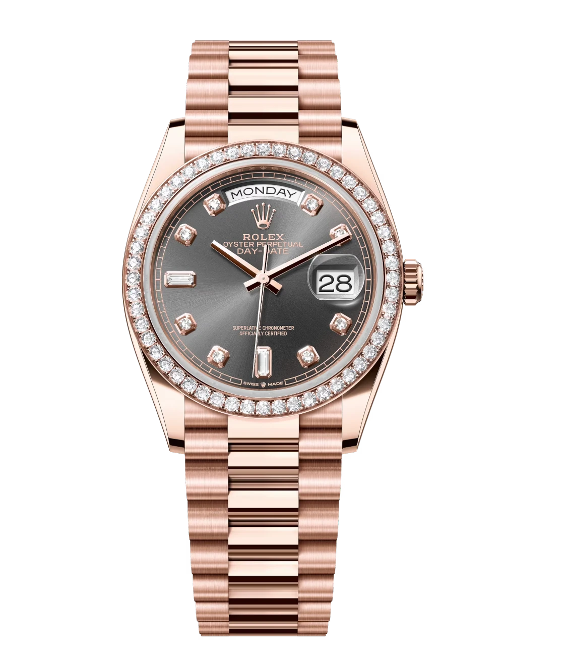 Rolex Day-Date 36 Oyster Perpetual 18 ct Everose gold slate, diamond-set dial diamond-set bezel President band Reference 128345RBR