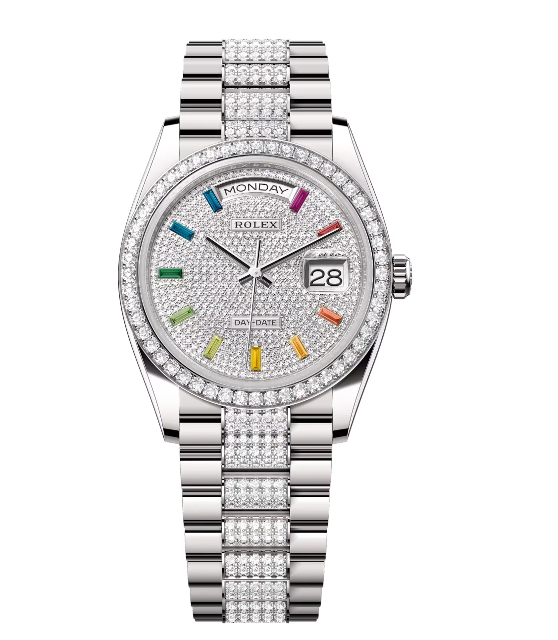 Rolex Day-Date 36 Oyster Perpetual 18 ct white gold diamond-paved dial diamond-set bezel diamond-set President band Reference 128349RBR
