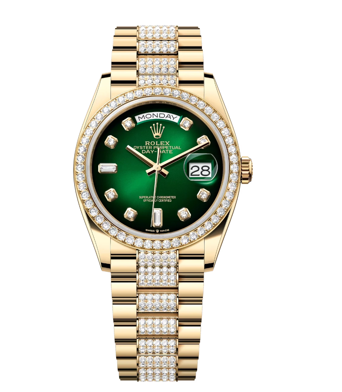 Rolex Day-Date 36 Oyster Perpetual 18 ct yellow gold green ombré, diamond-set dial diamond-set bezel diamond-set President band Reference 128348RBR