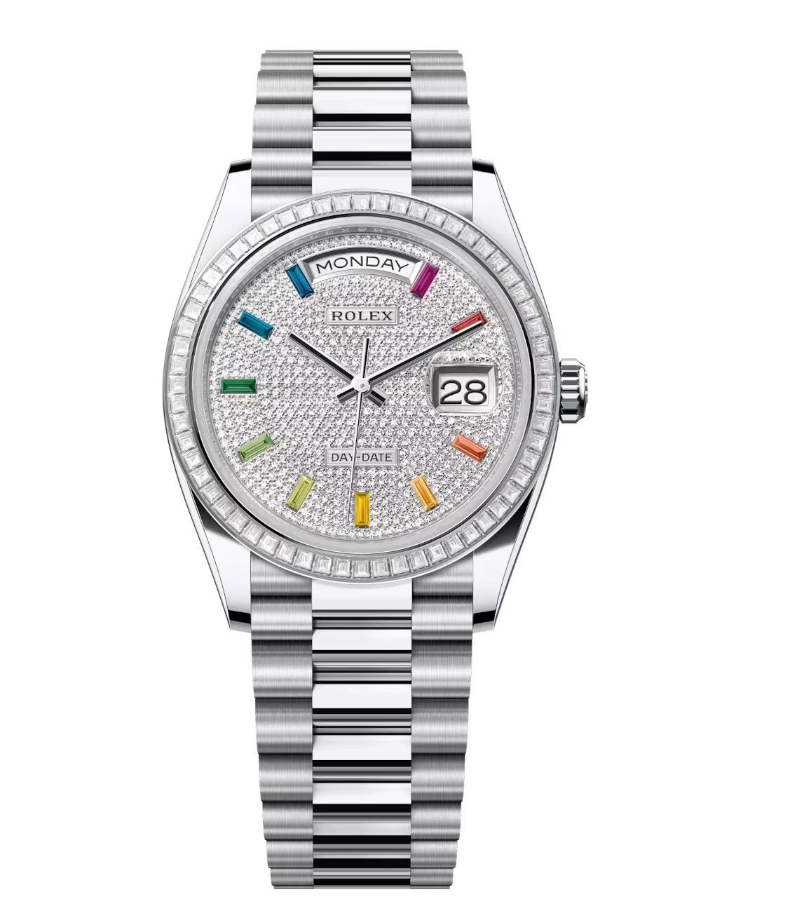 Rolex Day-Date 36 Oyster Perpetual platinum diamond-paved dial diamond-set bezel President band Reference 128396TBR