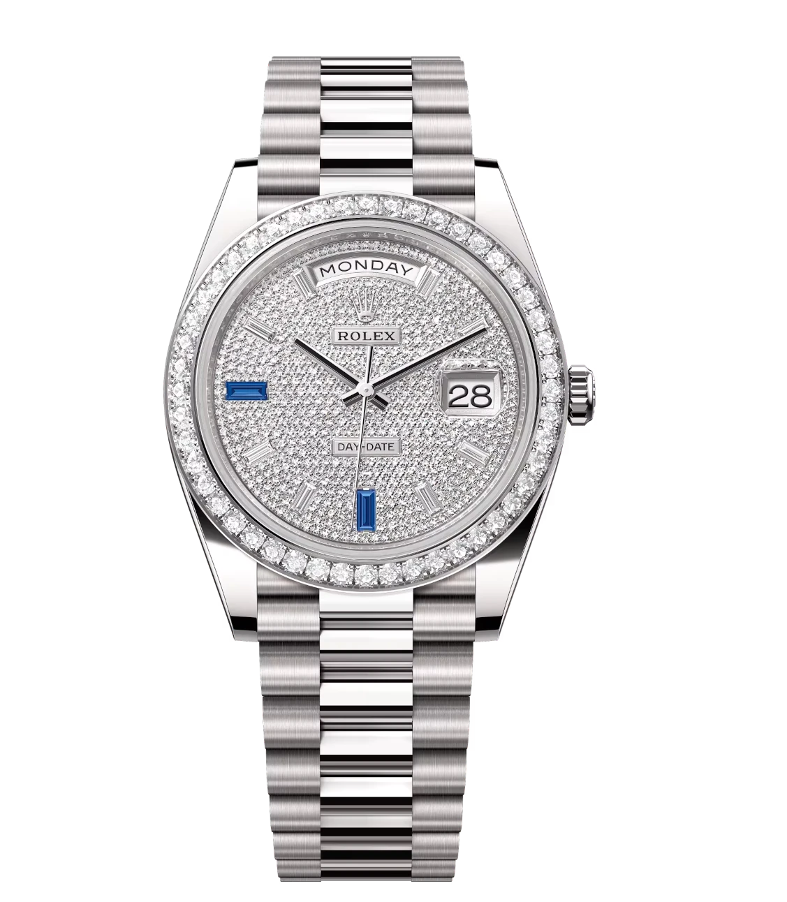 Rolex Day-Date 40 Oyster Perpetual 18 ct white gold diamond-paved dial diamond-set bezel President band Reference 228349RBR